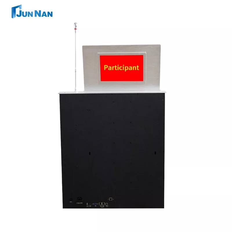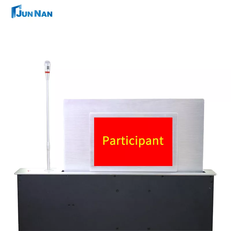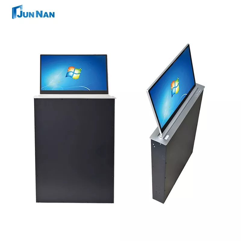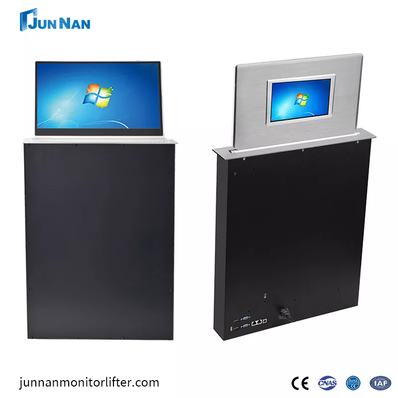 Напредната конференциска маса со моторизиран екран на допир за подигање на LCD монитор со заден екран LCD монитор е погодна за различни сценарија, имаме технологија за сечење на CNC машина и ласерска технологија, а најновата технологија на станицата за подигнување на LCD монитор гарантира дека производите се со врвен стандард. Целата наша станица за подигнување на LCD монитори припаѓа на кинеското производство, достапна за купување на големо, може да се прилагоди приватно за клиентите и има доволно залихи на станицата за подигнување на LCD монитор за поддршка на брза испорака до клиентите. Станицата за подигање LCD монитор со заден екран или заден дел со плоча за маса е специјално дизајнирана опрема за подигнување, која главно се користи во конференцискиот систем, особено оние прилики каде што треба да ја прикажете содржината на конференцијата, како и информациите на учесниците. И ние, Junnan Equipment, имаме различни сертификати и сертификати како што се CCC, CE сертификат, ROHS, ISO сертификат итн. Нашите производи се безбедни и квалитетни со извозна квалификација, а ние сме директна продажба во фабрика со поволна цена, а ние имаме сопствена фабрика, која работи многу години.