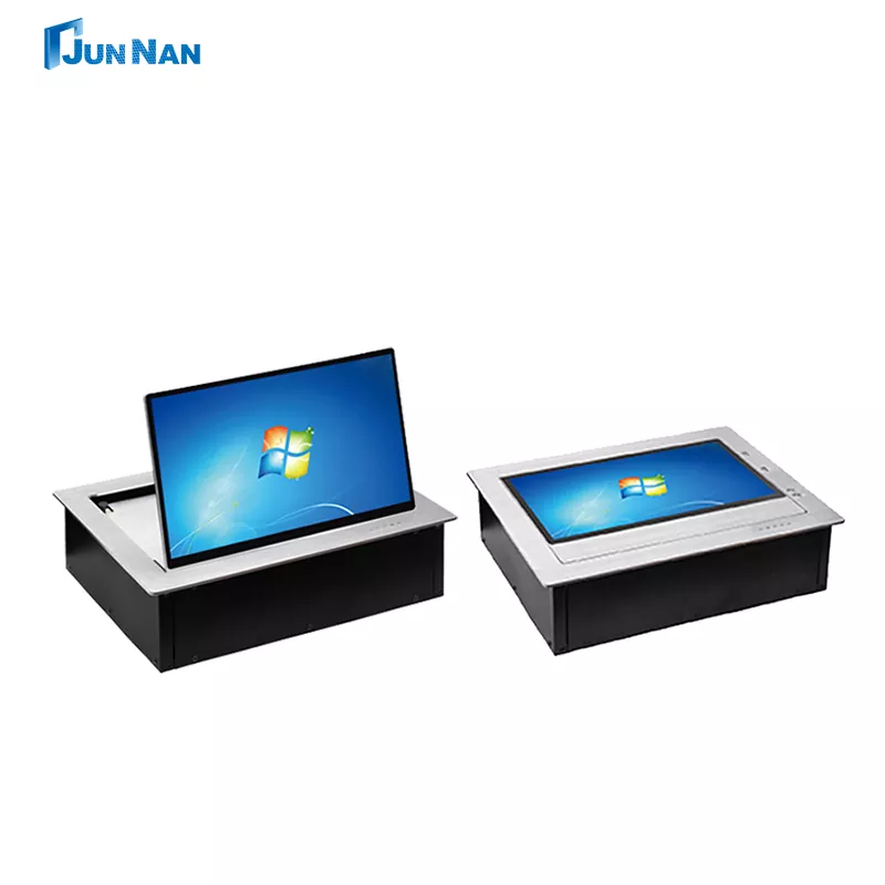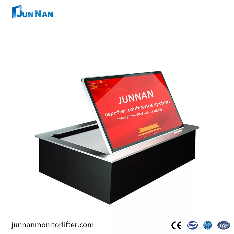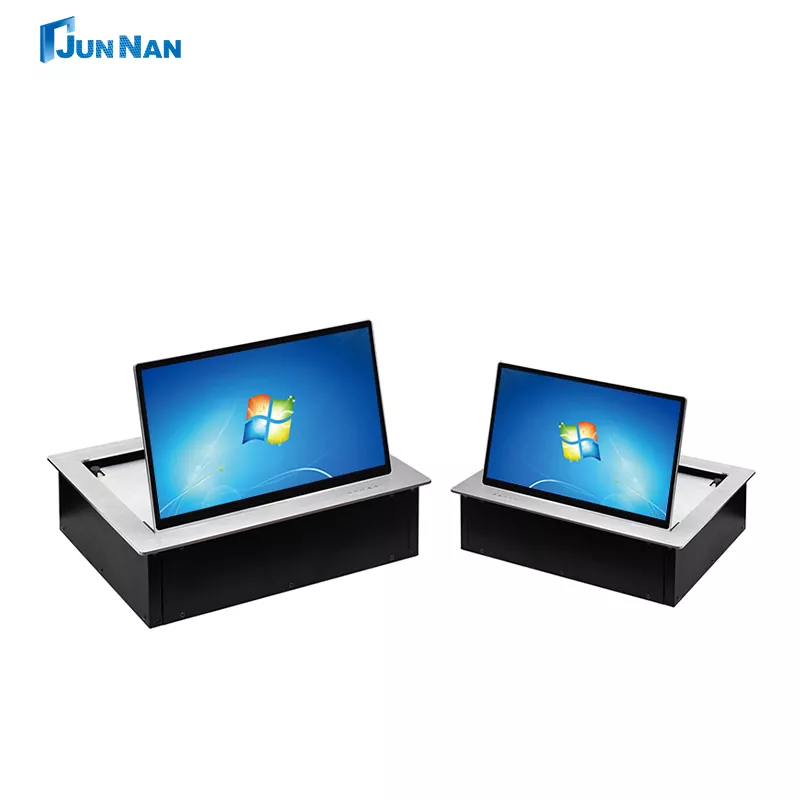 Гуангжу јунан е професионален производител на десктоп преклопни монитори во Кина. Превртен екран на работната површина 15,6 инчи лизгање нагоре Системот за конференции на екранот главно се користат во конференциски табели на високо ниво на извршни директори. Преклопните монитори за конференциски десктоп може да се сокријат во конференциската маса кога не се користат, што заштедува простор на работната површина и ја прави конференциската маса посредена. Сокривањето на мониторот кога не се користи, ја штити содржината на екранот да не ја гледаат други, зголемувајќи ја безбедноста на информациите. Со моторизирана контрола, флиперот лесно може да го преврти мониторот до правиот агол за најдобар ефект на аголот на гледање. Може да биде опремен со микрофон, едно превртување на копчињата, предно и задно прилагодување, со функција против штипкање, безбедна и безгрижна, скриената вградена инсталација е многу убава.