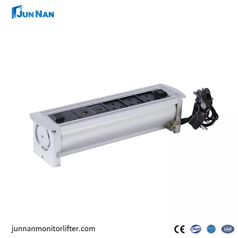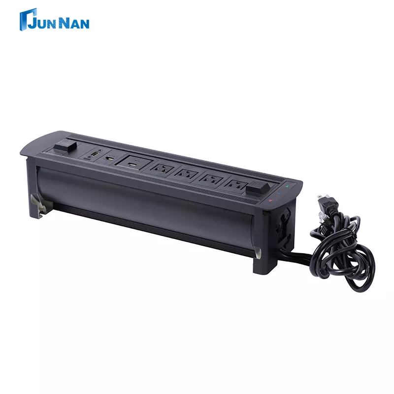 JUNNAN Office Desk Embedded Pop Up Desktop Socket поддржува функционален панел со превртување со еден допир, изложени повеќе приклучоци за лесен пристап до електрична енергија, а приклучокот ја крие работната површина без да зафаќа простор. напредните штекери за десктоп се појавуваат од најновиот тип на приклучоци, лесни за одржување, може да се купат на големо или да се прилагодат за клиентите. Покрај тоа, нашите Junnan уреди имаат многу сертификати, како што се CCC, CE сертификат, ROHS, ISO сертификат итн. Нашите производи се безбедни и квалитетни, со извозна квалификација, директна продажба во фабрика, поволна цена, сопствена фабрика и имаат е во бизнисот многу години.